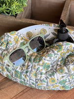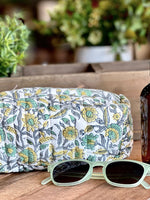 Estuche con exterior de tela, forro interior de algodón y cierre, ideal para guardar sus artículos imprescindibles y elementos de maquillaje.