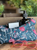 Estuche con exterior de tela, forro interior de algodón y cierre, ideal para guardar sus artículos imprescindibles y elementos de maquillaje.