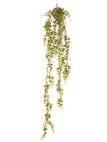 Planta artificial con base que simula formato kokeadama con tierra y raices. Decoración simple y fácil de cuidar. Viene con cañamo para colgar.