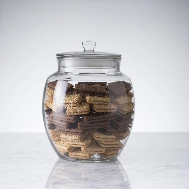 Frasco redondeado de vidrio, con capacidad de 2 litros. Su diseño no sólo es ideal para el azúcar, cereales o frutos secos, sino que también proporcionará una solución atractiva para jabones, algodón en el baño, lana o lo que quieras.