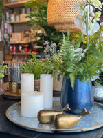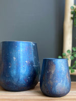 Portamacetero de metal galvanizado con terminación envejecida en tintes azules