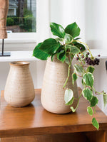 Florero de cerámica pintada y forma irregular de diseño único.