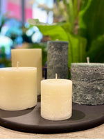 Velón sin aroma perfecto para complementar tu decoración y darle toques de calidez a tus espacios. Hecho a mano a base de parafina, lo que permite tener una llama firme y que no humee. Se consumen centralmente y de manera uniforme lo que logra que prácticamente no goteen.