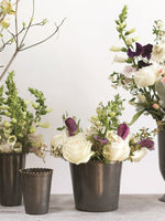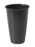 Portamacetero de metal galvanizado gris oscuro y detalles dorados en el borde.