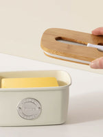 Guarda y sirve tu mantequilla con facilidad. Diseñada con acero al carbono duradero recubierto de color crema y bambú sostenible, esta mantequillera no solo es práctica sino que seguramente agregará un toque de estilo a cualquier mesa y hora del té.