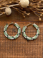 Aros hechos a mano con rafia y mostacillas. Un complemento que no puede faltar!