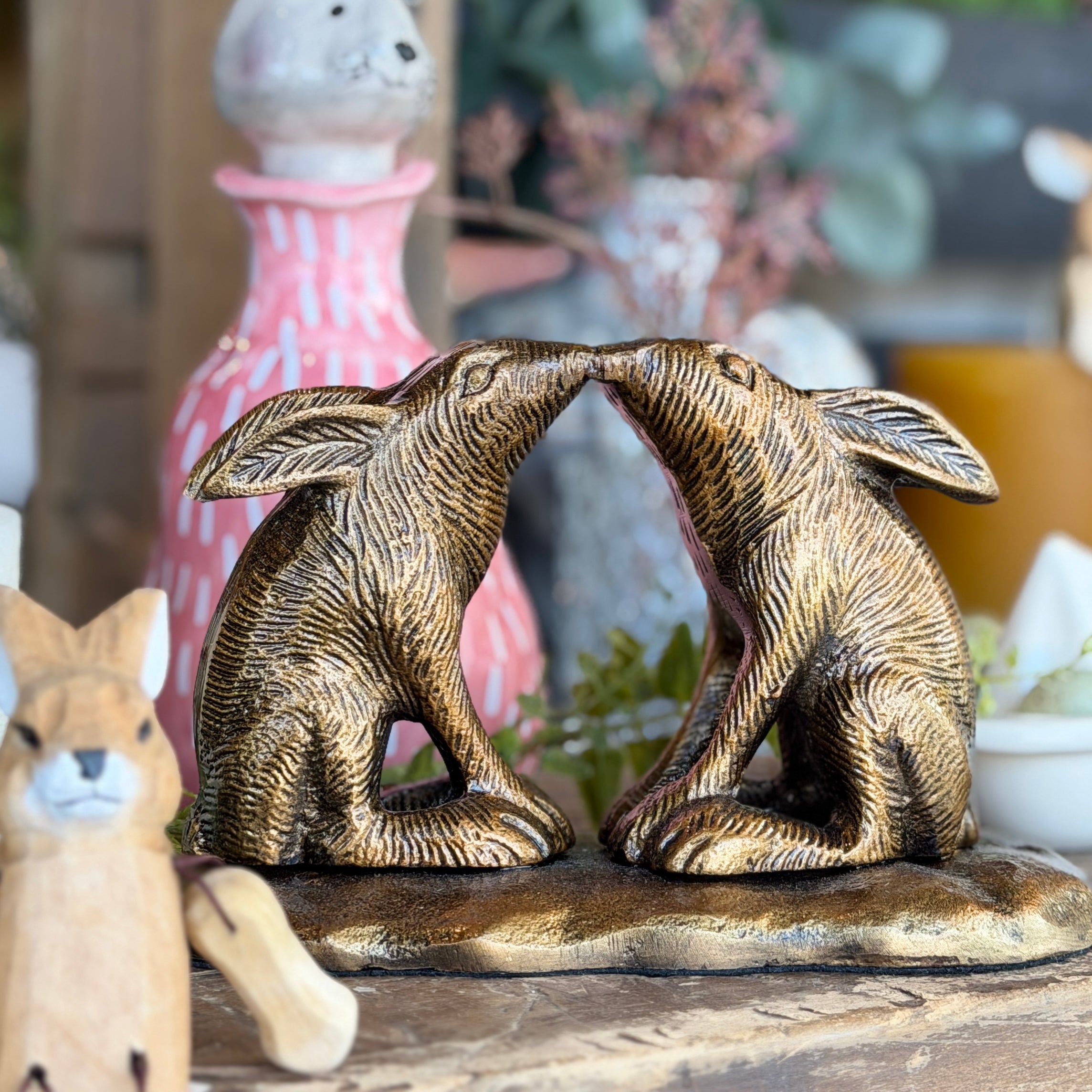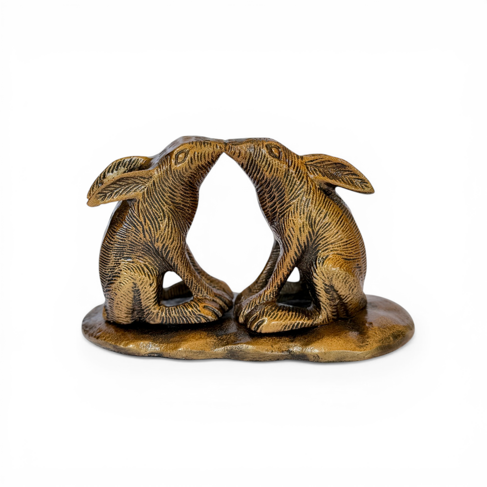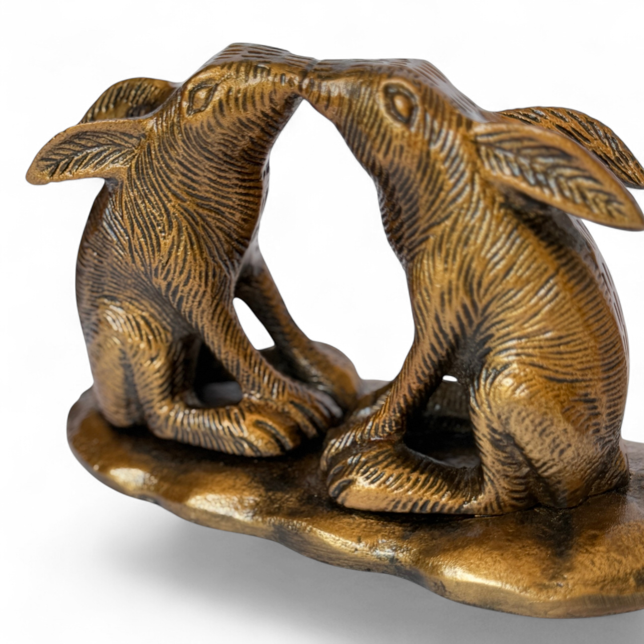 Figura de bronce de tiernos conejitos dándose un beso