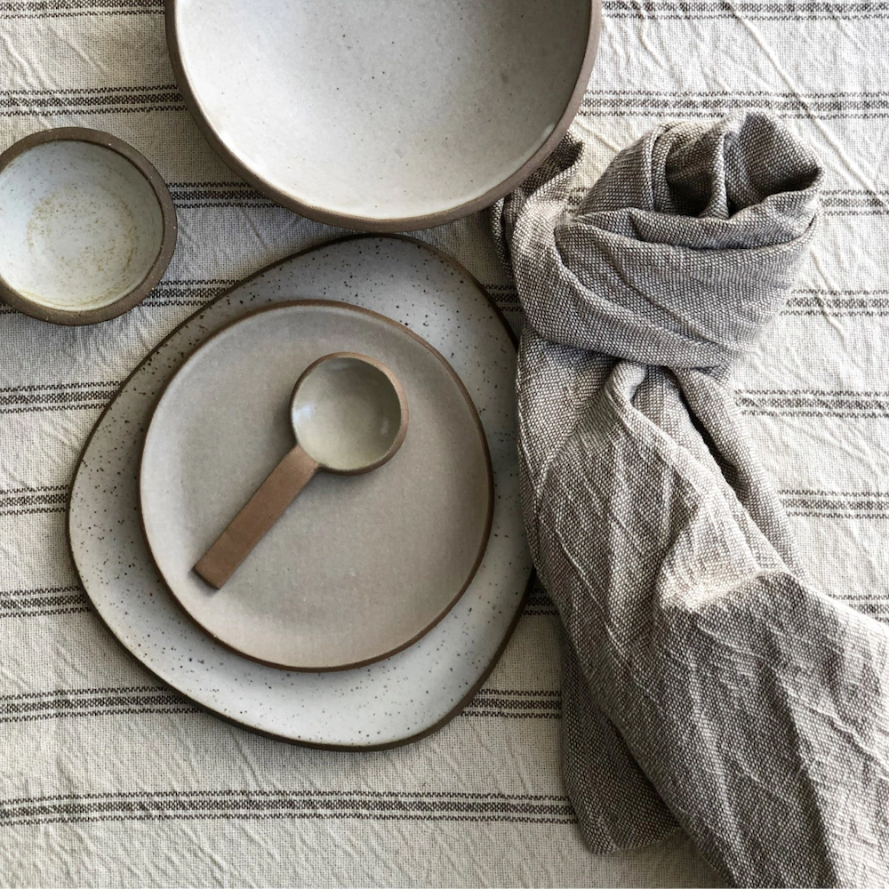Mantel con textura y arrugado natural. Es de 100% algodón, noble y resistente al uso y al lavado. Son elaborados de manera artesanal, con el valor del trabajo manual y lo desigual que hace a cada pieza única.