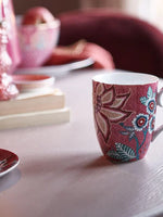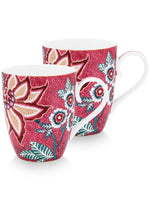 Set de dos tazones de porcelana con diseño de flores en tonos rosados.