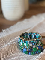 Pulsera en espiral hecha a mano con metal y mostacillas. Un complemento que no puede faltar!