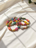 De una línea de joyería 100 % sostenible, creada por un grupo de mujeres artesanas de bajos recursos. Utilizando tela de saris desechados y envolviéndolos con pequeñas cuentas de madera, estas mujeres crean una colección de joyería única y colorida.