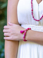 De una línea de joyería 100 % sostenible, creada por un grupo de mujeres artesanas de bajos recursos. Utilizando tela de saris desechados y envolviéndolos con pequeñas cuentas de madera, estas mujeres crean una colección de joyería única y colorida.