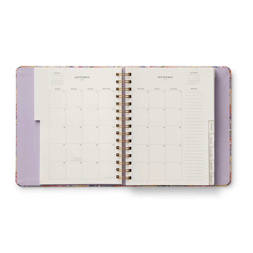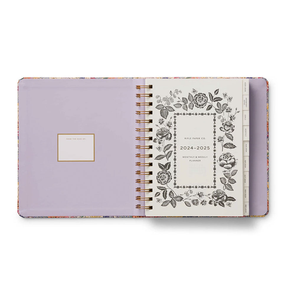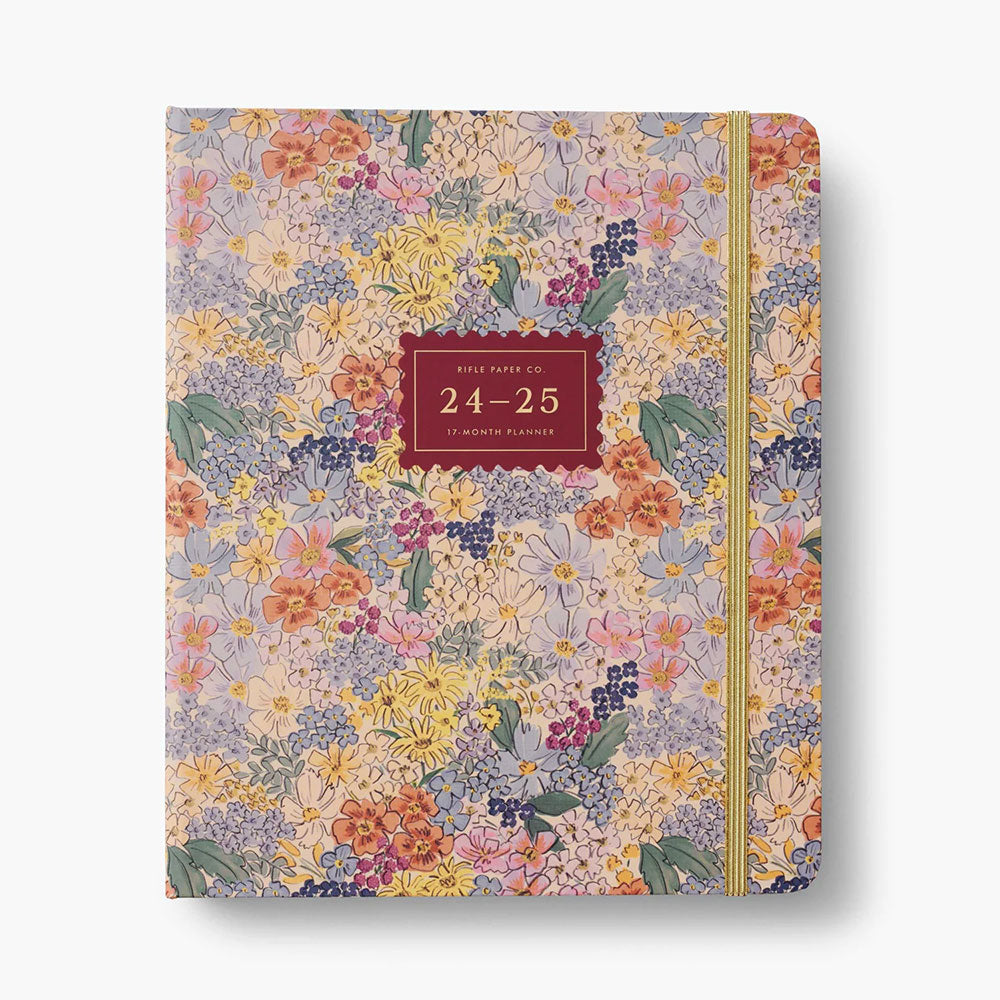 Agenda 2024-2025 de 17 meses es perfecta para ti. Tiene una tapa dura y resistente que envuelve la encuadernación en espiral interior y una banda elástica que mantiene las páginas cerradas y en perfecto estado. En el interior encontrarás vistas mensuales y semanales, citas inspiradoras, secciones para objetivos, notas y contactos, carpetas de bolsillo para almacenamiento y tres hojas de stickers para mayor diversión.