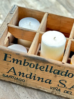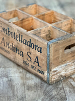 Esta caja es un tesoro precioso, es una caja antigua para botellas de la empresa CCU, tiene múltiples usos, para poner velas, plantas, botellas y mucho más!, es u objeto decorativo en sÍ. Es una pieza única con la nobleza y belleza de la madera gastada por el tiempo.
