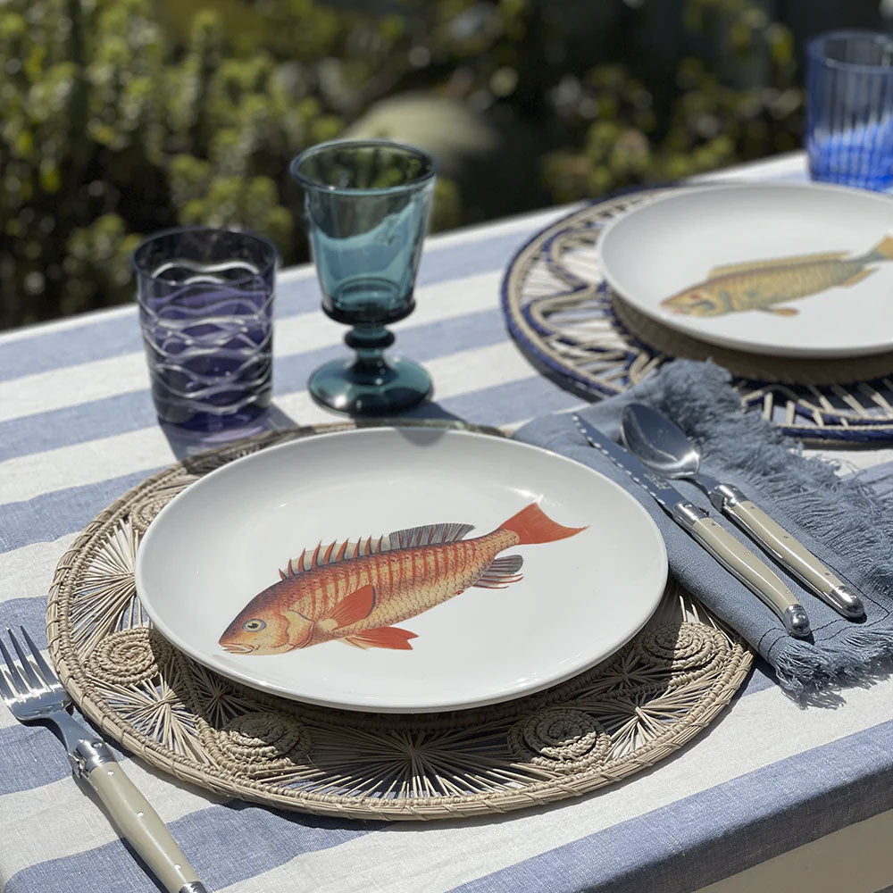 Plato con diseño impreso y horneado de pescado. Hecho en Chile.