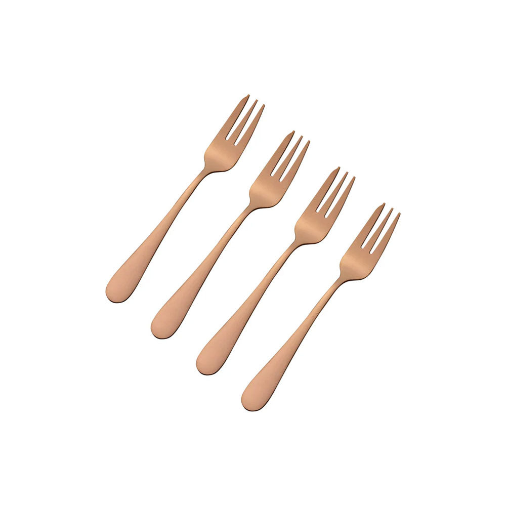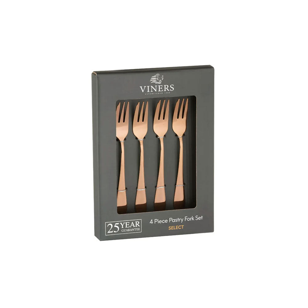 El juego de tenedores Viners Select de 4 piezas es perfecto para disfrutar de pasteles, tartas y postres pequeños. Los cubiertos están hechos de acero inoxidable 18.0 de la mejor calidad, con un recubrimiento de titanio adicional para mayor resistencia y durabilidad. La línea Select cuenta con una forma clásica de mango en forma de lágrima.